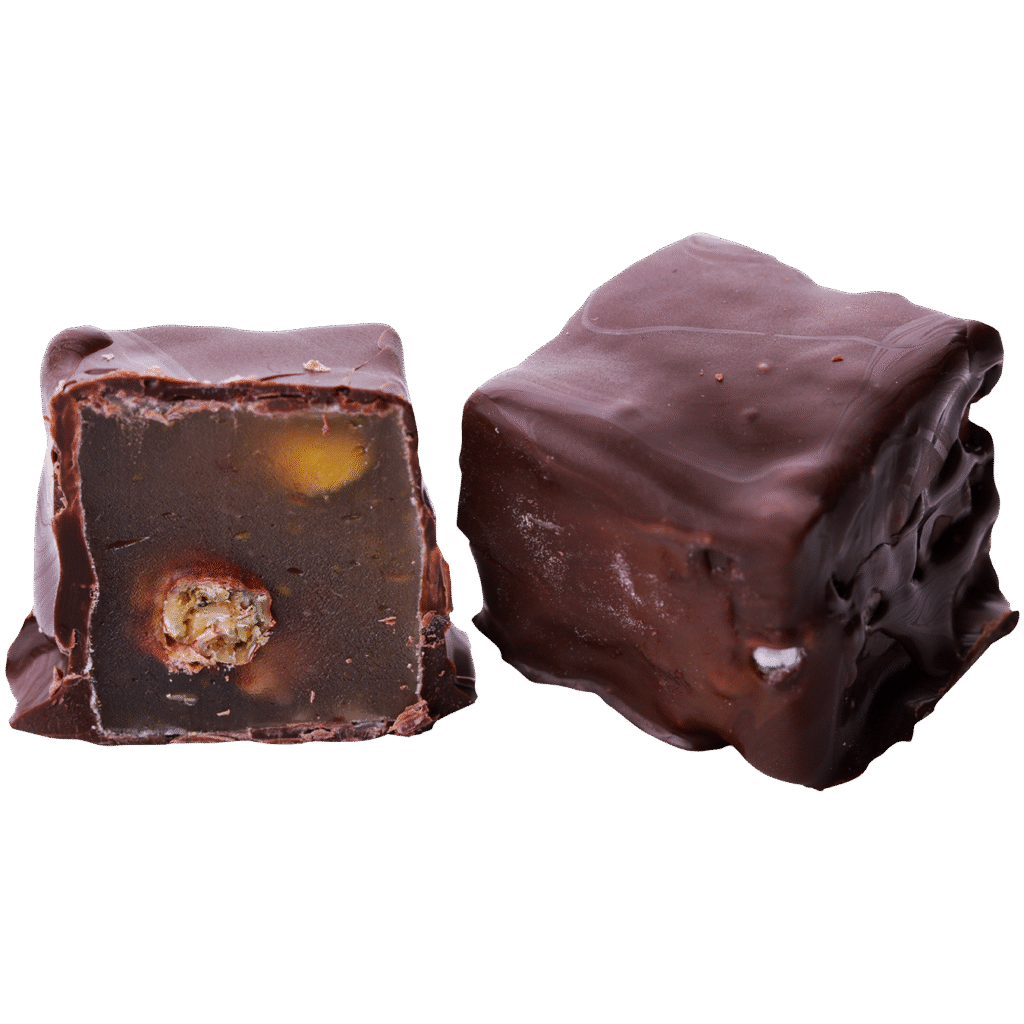 مزيج من حلوى البهجة التركية المغطاة بالشوكولاتة الداكنة