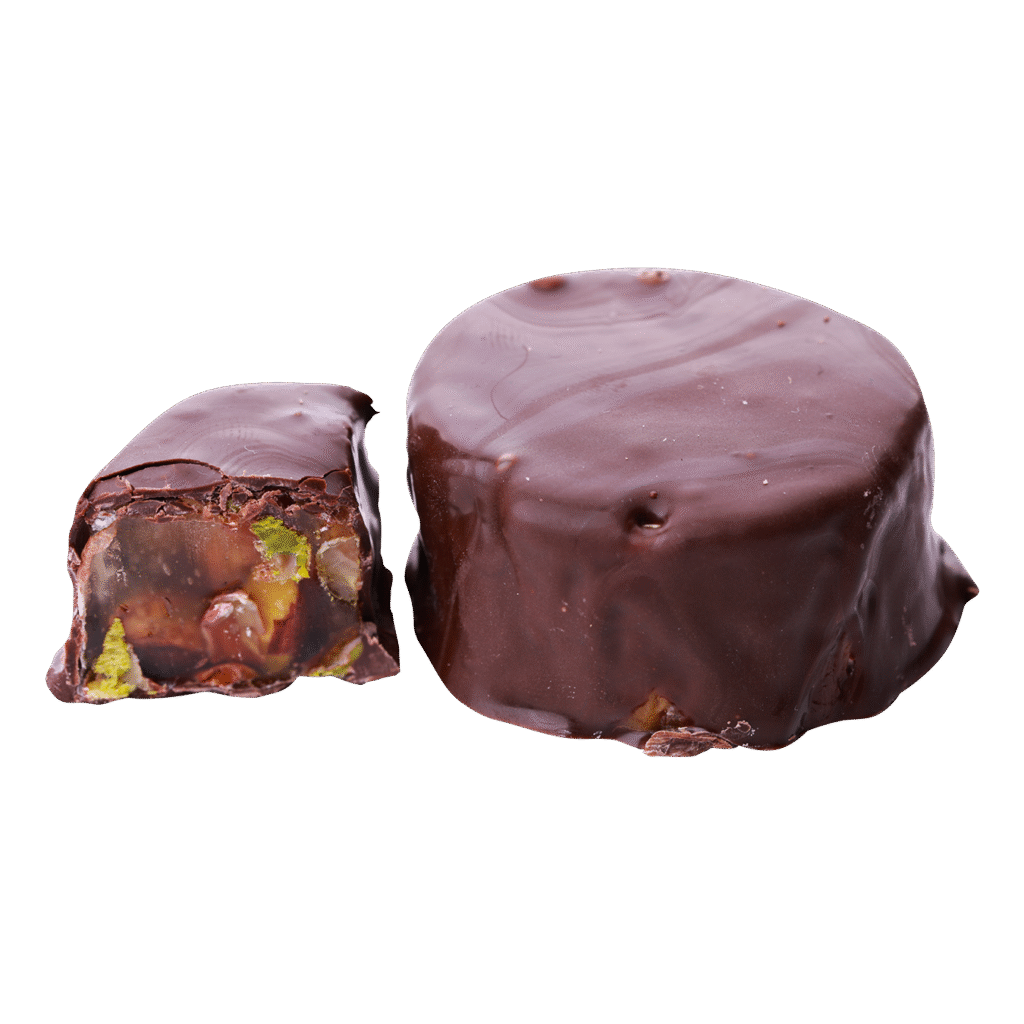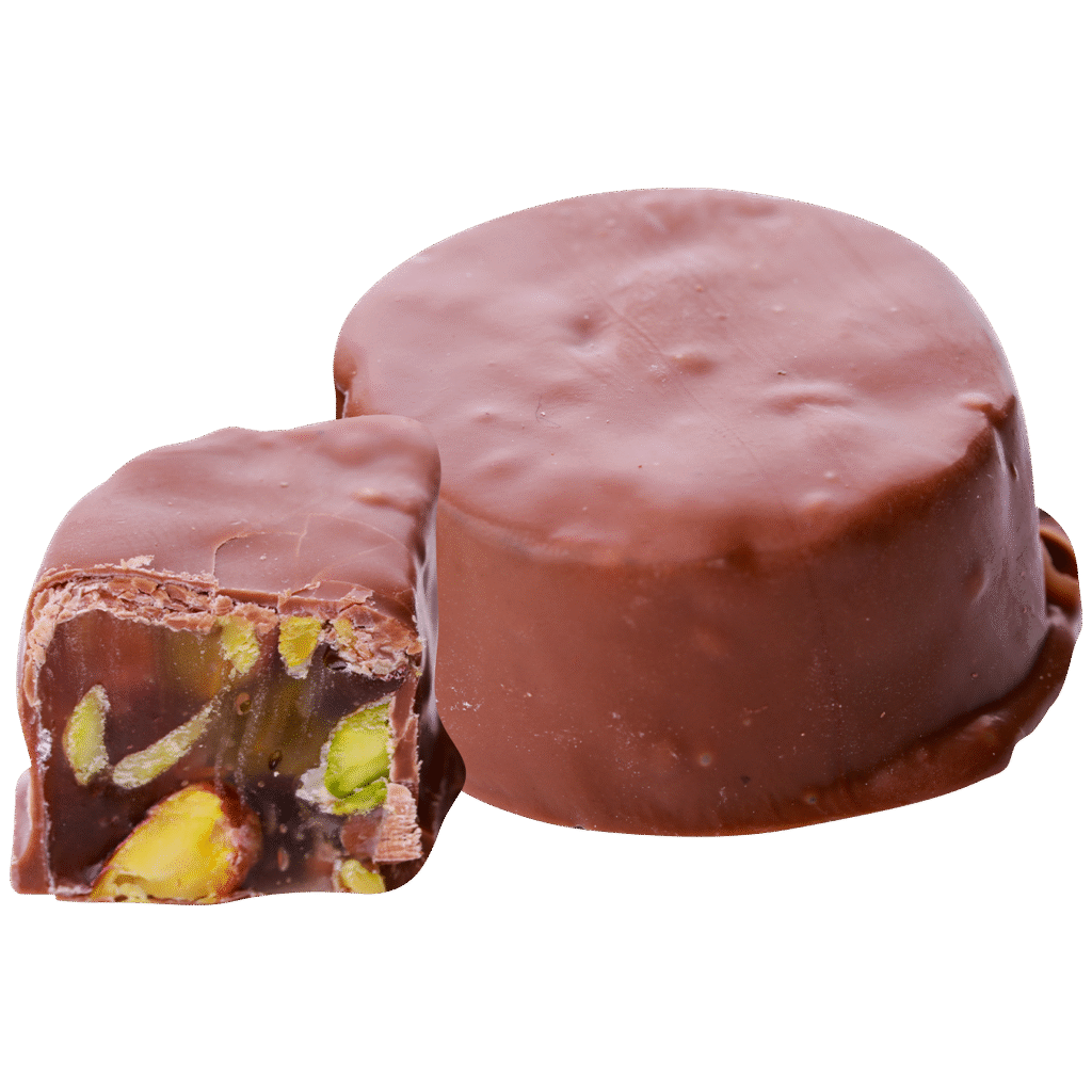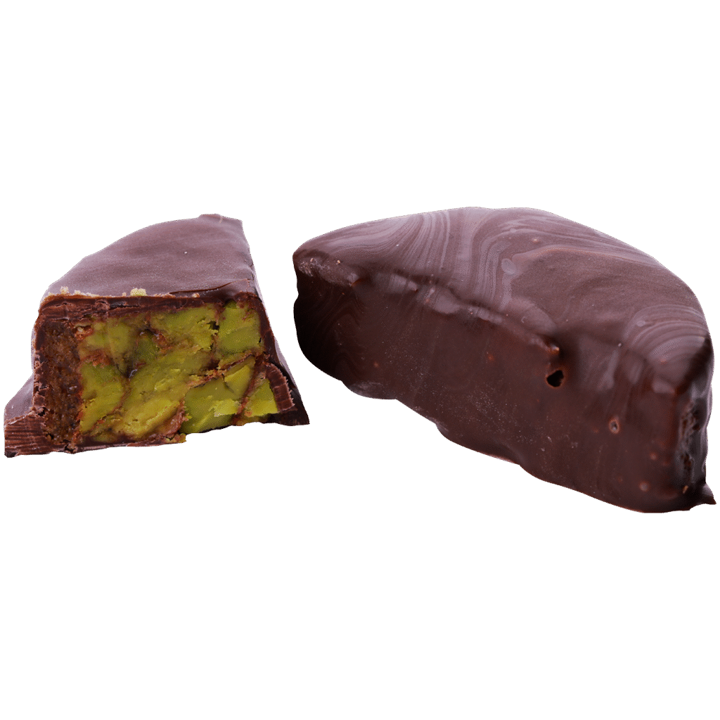 حلوى البلورية بالفستق الحلبي المغطسة بالشوكولا الداكنه