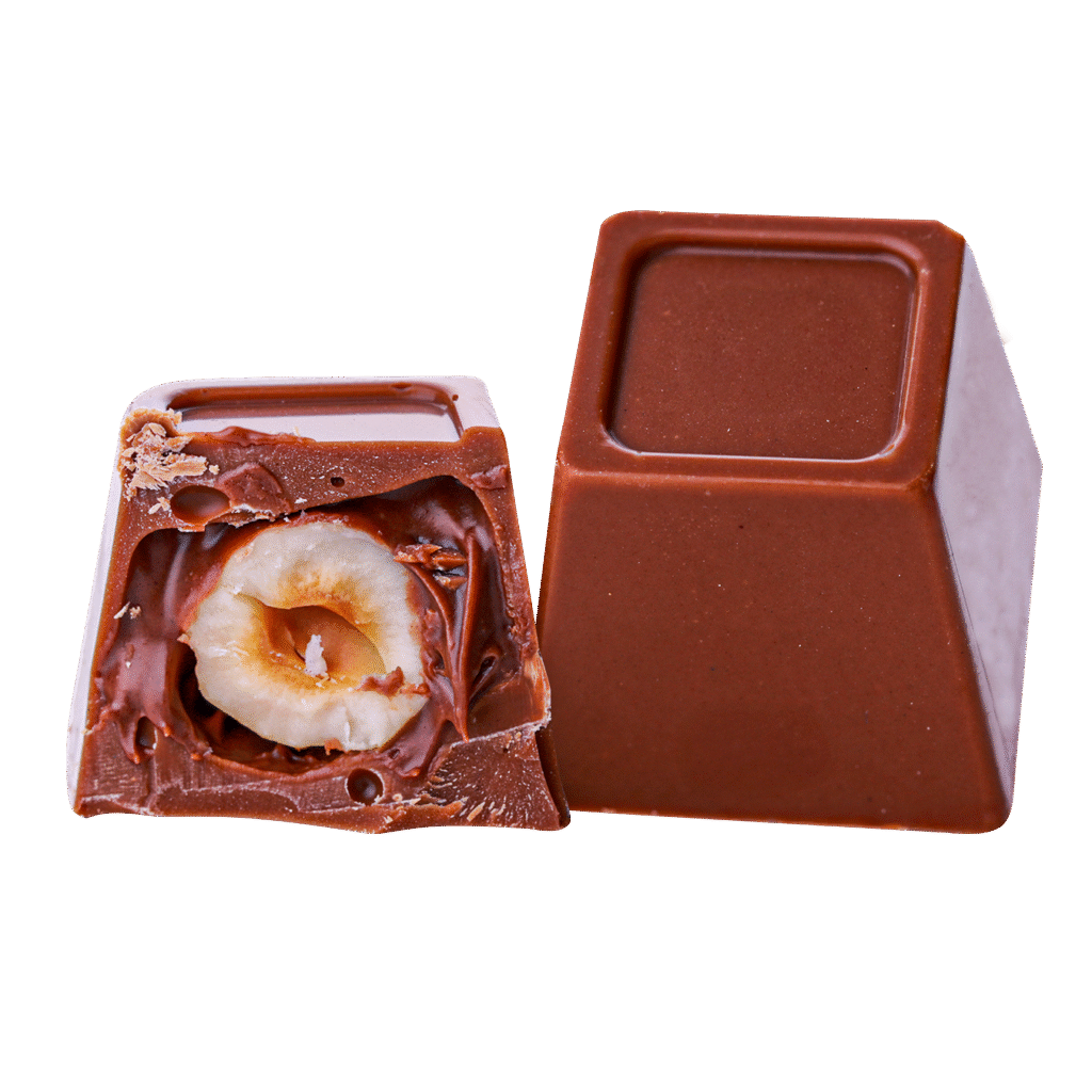 Chocolate with half a roasted hazelnut